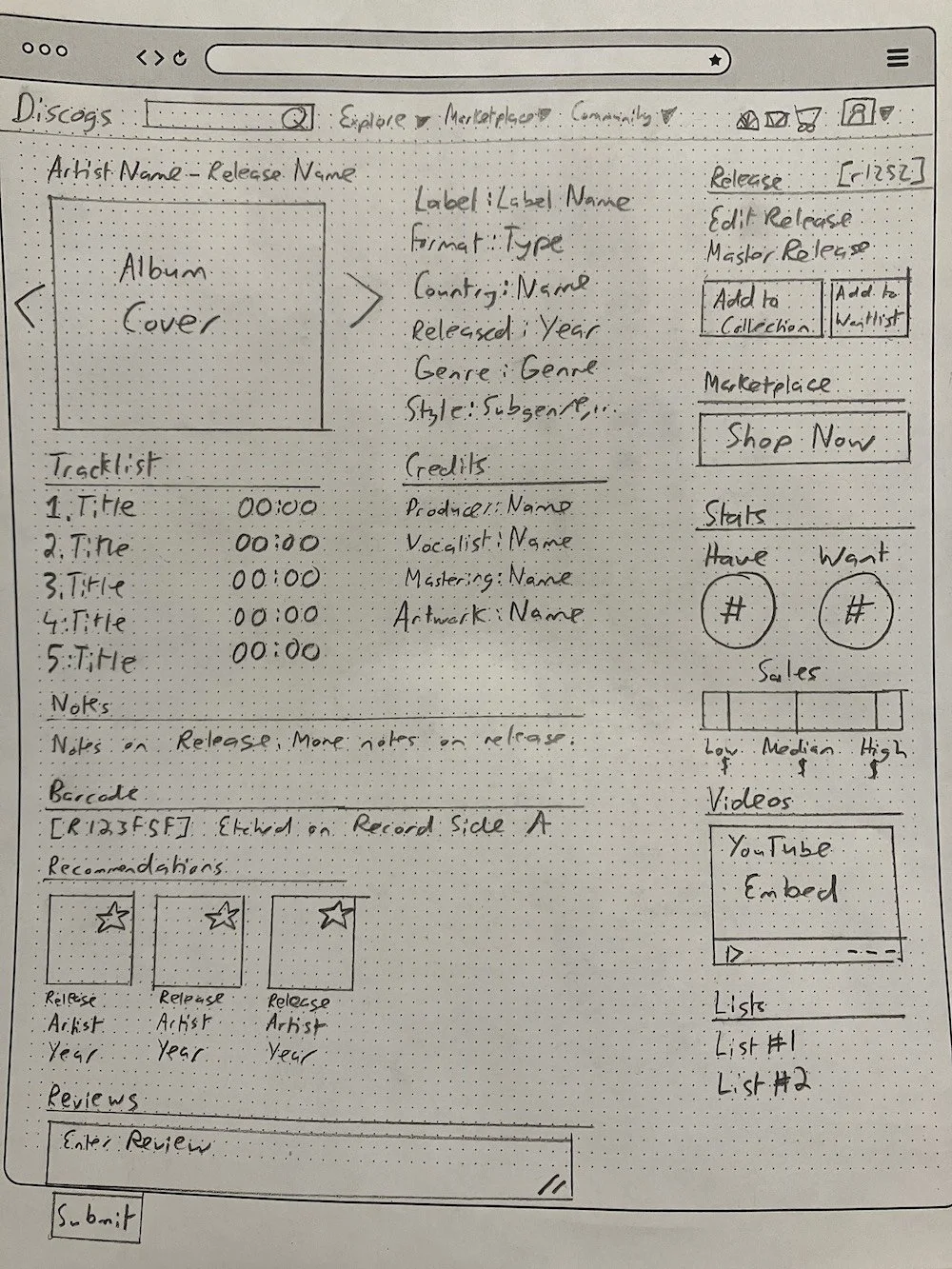 I realized the importance of familiarity for users. The database quality of Discogs is likely part of the charm. I was pleased that the Discogs users who viewed the prototype said that it maintains the ‘feel’ of the website.