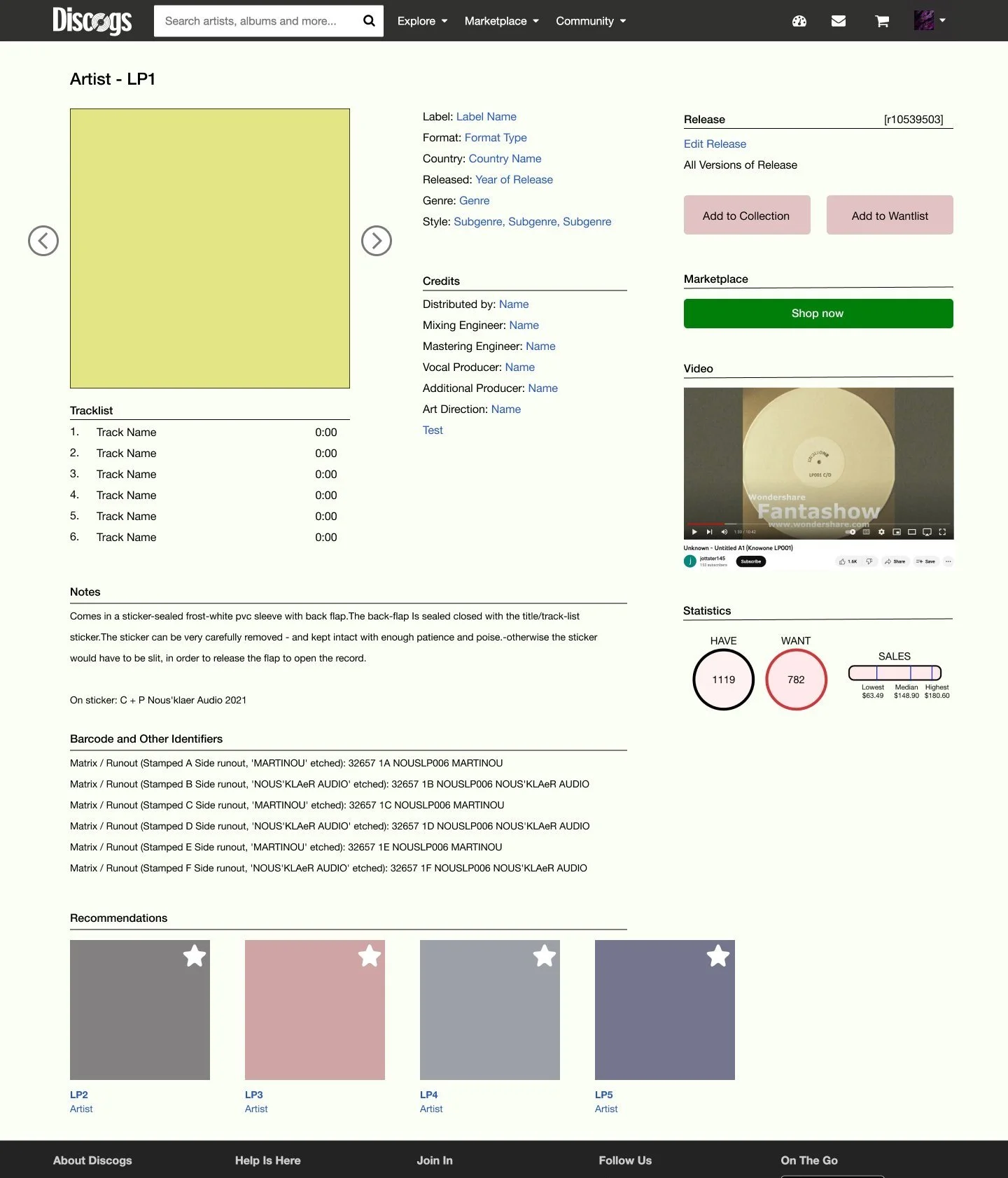 I tested the wireframes with the target audience, which are either Discogs members or vinyl collectors.